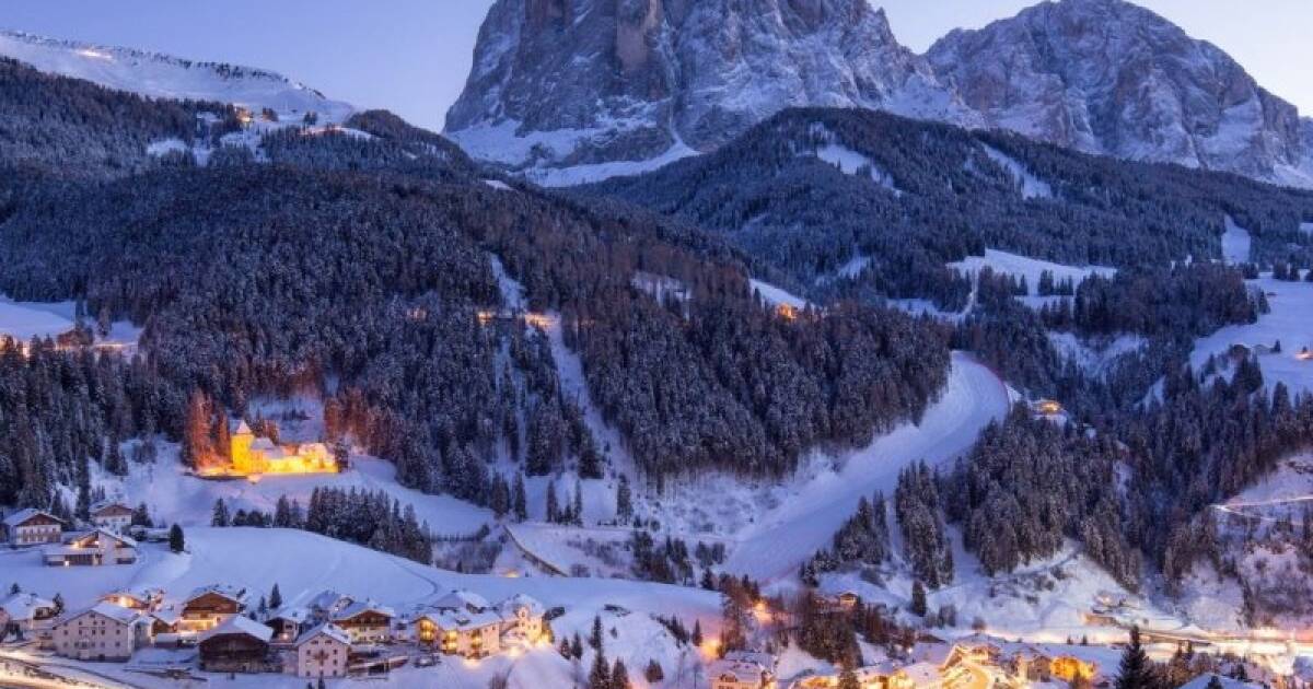 Wintersport in het dorp Sankt Christina di Val Gardena